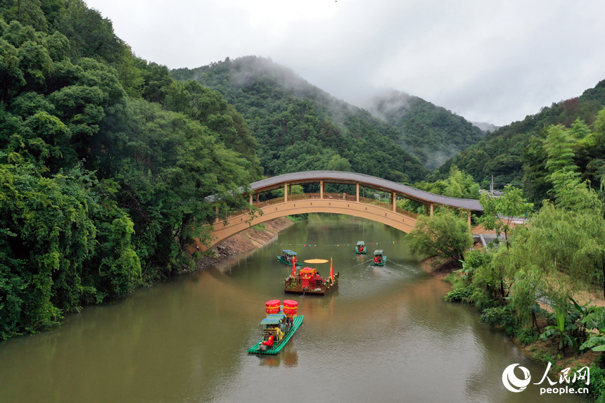 抚河源河道蜿蜒于原始峡谷之间,水质清澈见底,两岸奇峰耸立,竹海婆娑,杨溪乡依托独特的生态优势,因地制宜打造了总长达4.5公里的竹筏漂流项目,既有湍急险滩的惊险段落,也有平缓如镜的观光区段,游客可同时感受激流勇进的快感与山水相映的静谧。