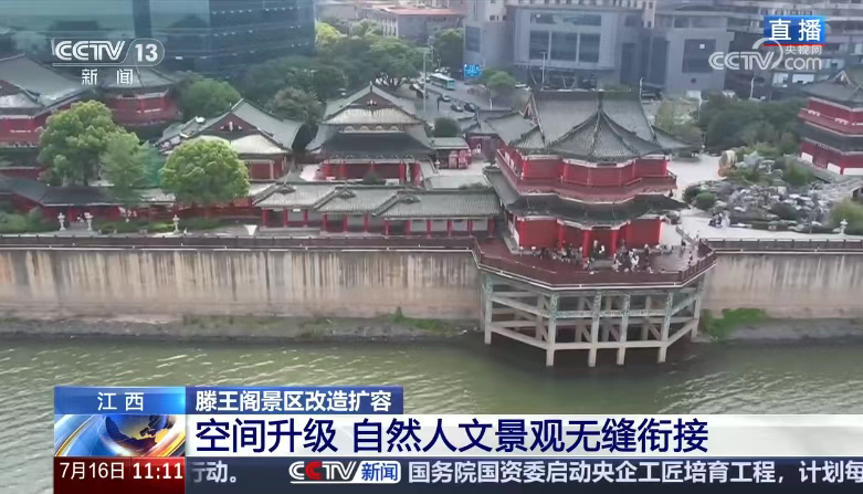 7月16日,央视《新闻直播间》报道:“十四五”以来,江西省实施城市更新项目近1.3万个,完成投资额超1.2万亿元,加快补齐基础设施和公共服务设施短板,城乡面貌焕然一新。今天的《活力中国调研行》,我们就走进江西南昌,看看今年年初完成改造扩容的滕王阁景区是如何实现“还江于民、还岸于民、还景于民”的。