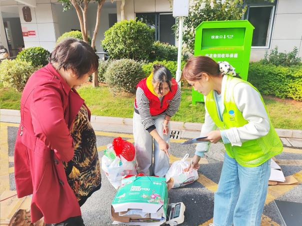 大江新闻讯 为大力倡导绿色低碳生活方式,将垃圾分类工作与民生服务深度融合,垃圾分类作为改善人居环境、推动资源循环利用的关键举措。10月23日下午,蔚复来广丰项目组联合上饶市广丰区城管局垃圾分类办,组织宣传员前往大石街道大石头社区锦绣华庭小区,成功开展可回收物兑换主题活动,以“变废为宝”的实践形式,引导居民主动参与垃圾分类,共同营造绿色低碳的社区环境。