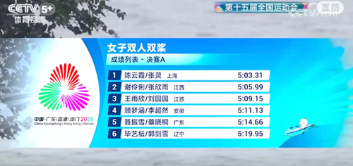 大江新闻讯 记者罗鑫报道:11月11日上午,第十五届全国运动会女子赛艇双人双桨1500米项目决赛在广东国际划船中心举行。宜春市万载籍运动员谢伶俐与队友张欣雨在比赛中团结协作,奋力冲刺,以5:05.99分的成绩,获得该项目银牌。这是本届全运会,江西省赛艇项目获得的第三枚奖牌。
