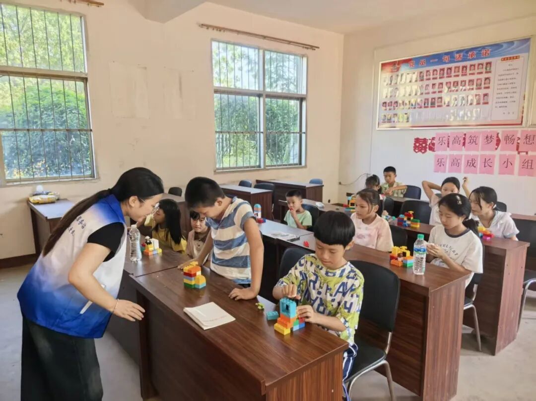 上午9时,七琴镇民政服务站工作人员以"积木变变变"破冰游戏开启活动。灵活变换的乐高兔子、小汽车迅速点燃孩子们的热情,专业心理咨询师通过创意拼搭引导孩子们具象化内心世界。在"快乐场景"创作环节,6岁的明明(化名)和小伙伴们用300余块积木搭建起"乡村游乐园",边展示边发出邀请:"欢迎来我们的开心农场!"