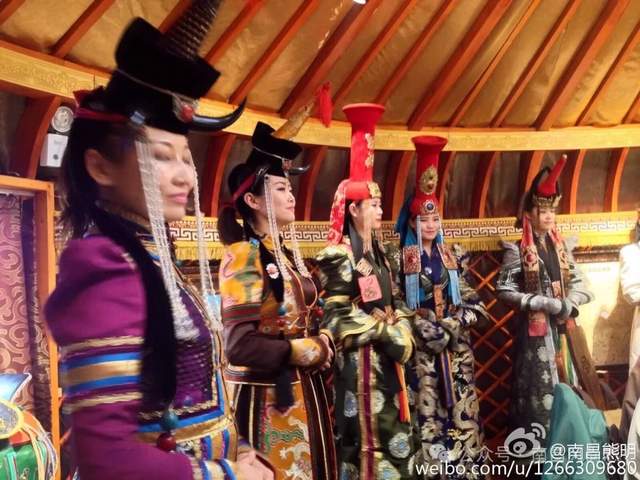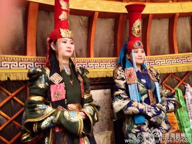 她们一个个身穿华丽的蒙古民族服饰,光彩夺目,正大仙容,如仙女下凡,似飞天再现。有的眉目含笑,婀娜多姿,百媚生娇。有的却面冷艳孤傲,法相庄严。她们的服饰颜色艳丽,且多彩多姿,极像敦煌壁画中的人物服饰,又像一些石窟中的彩塑衣装。