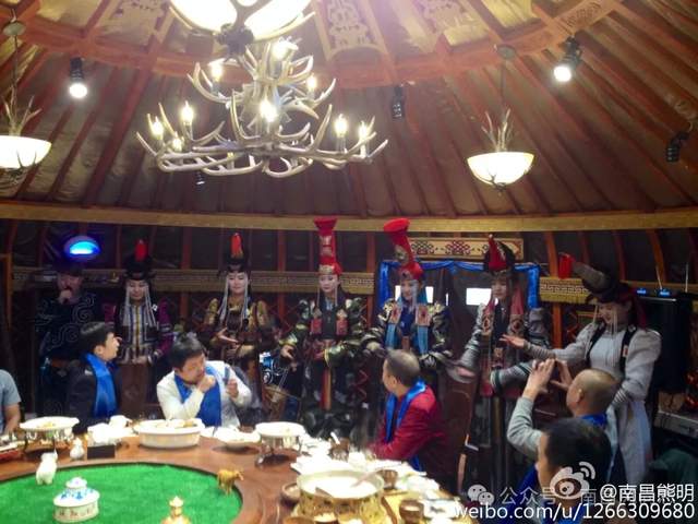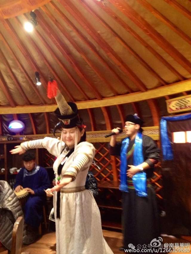 一霎时,马头琴响起,电子琴伴奏,俊男靓女时而载歌载舞,时而环圆桌侍立。那些姑娘身材高挑,面容姣好,果然是有“行走时香风细细,坐下时淹然百媚”之姿。