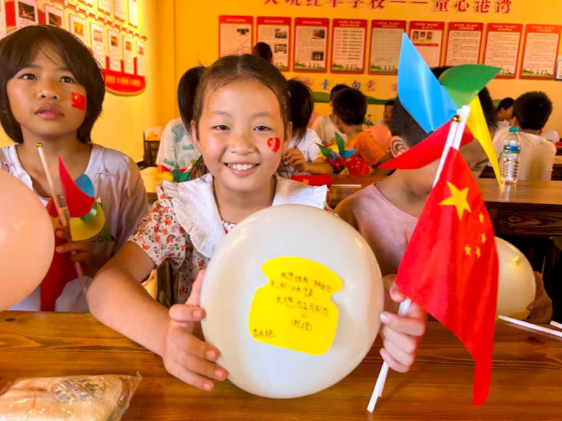 活动尾声,40只彩球载着童真心愿飞向蓝天。"长大后要当解放军"......稚嫩笔迹写满对生活的热爱。当孩子们手持国旗齐声喊出"请党放心,强国有我"时,秋日暖阳为纯真誓言镀上金边