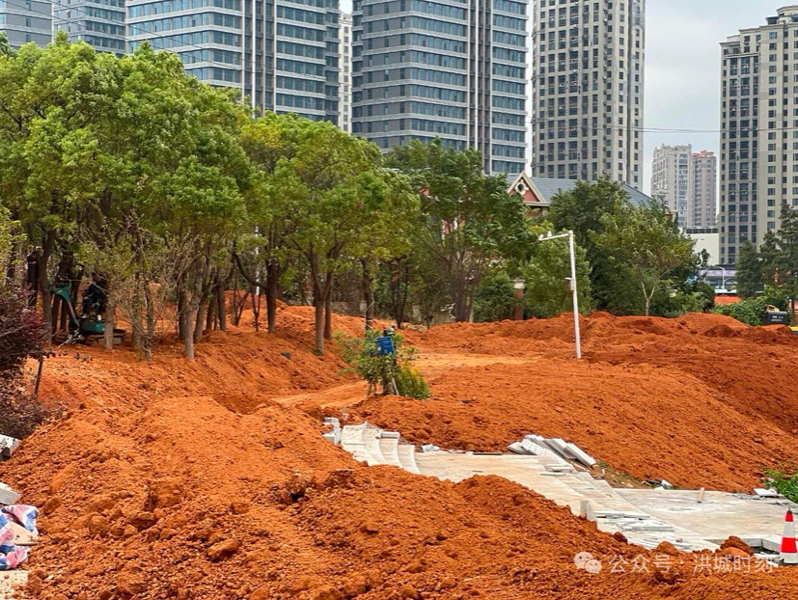 在大悦城~天虹一侧的节点,增加了廊架和公共空间,文化馆侧新建了环形道路,形成小型湖泊。从项目建设进展看,目前已经基本完成了景观面改造和覆土,同时相应的景观空间节点硬化和结构施工也在同步进行中。