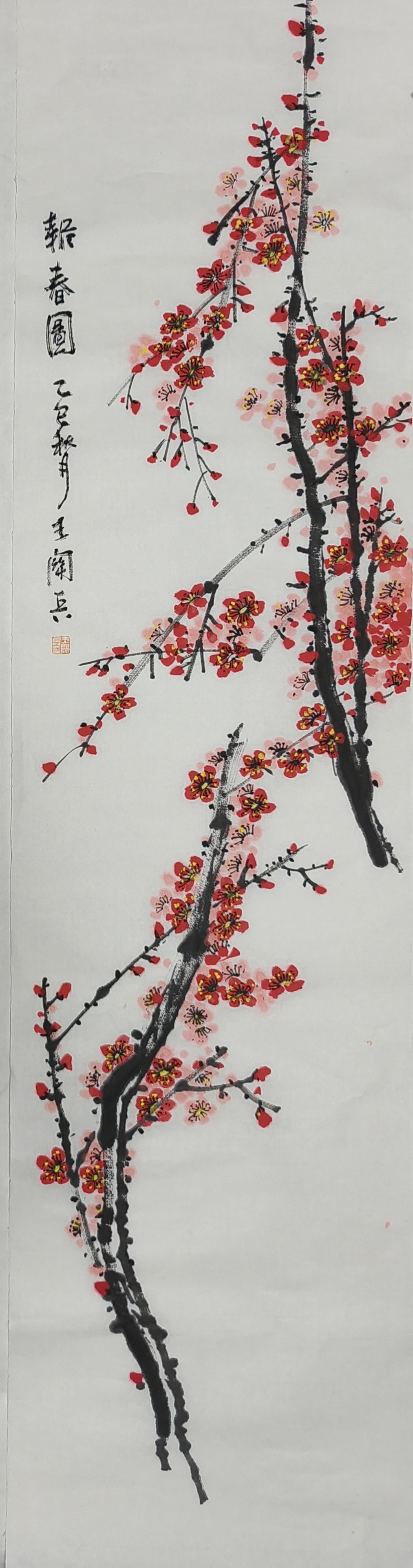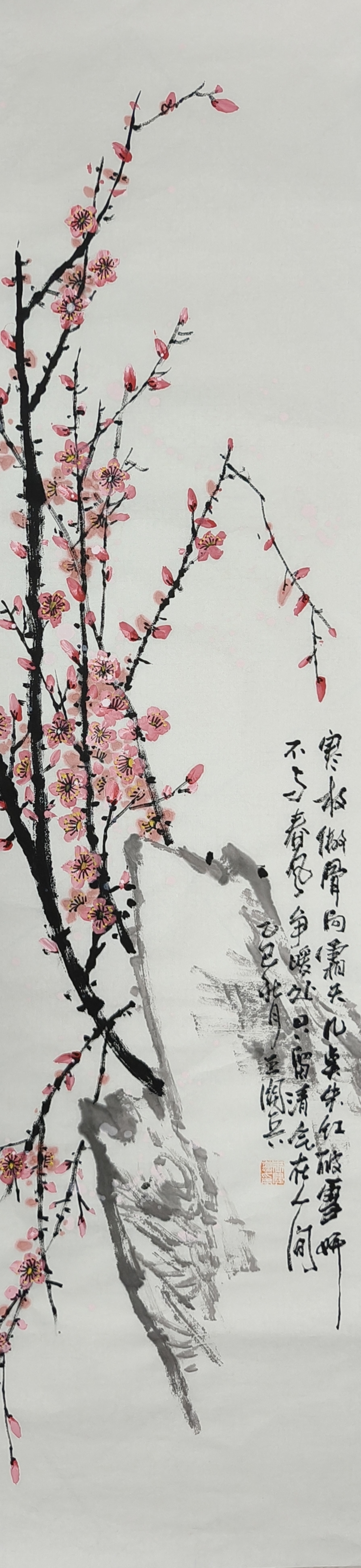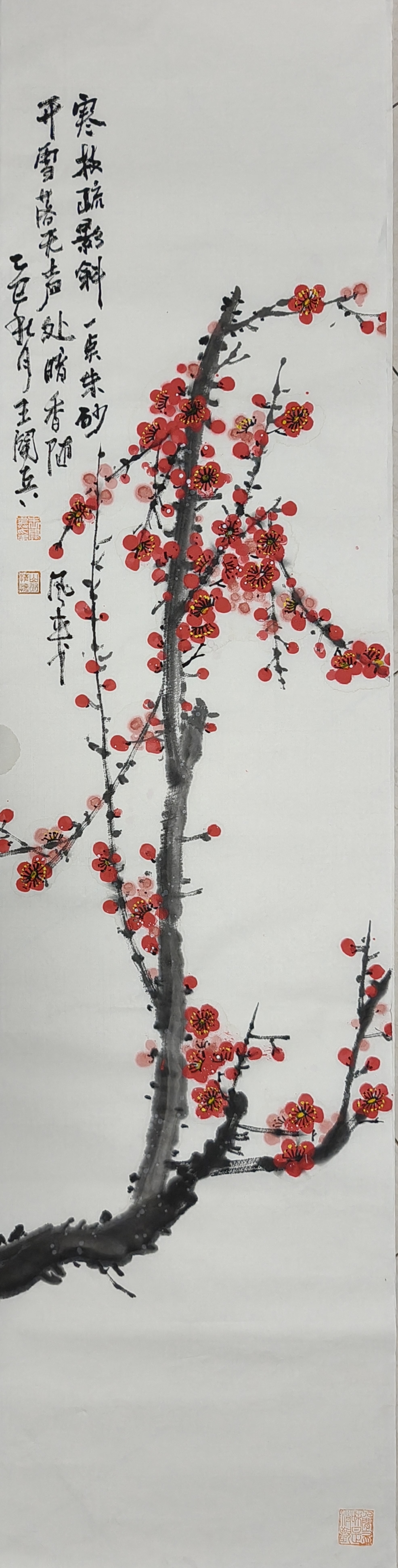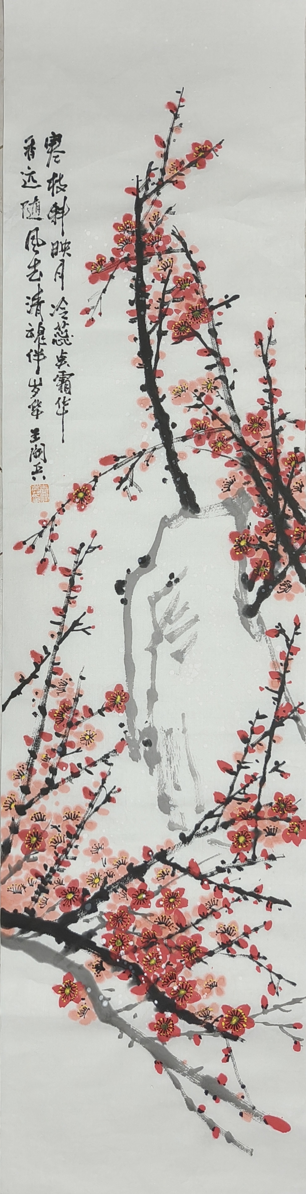 王关兵先生笔下的梅花图,墨骨红花间,意趣与生机