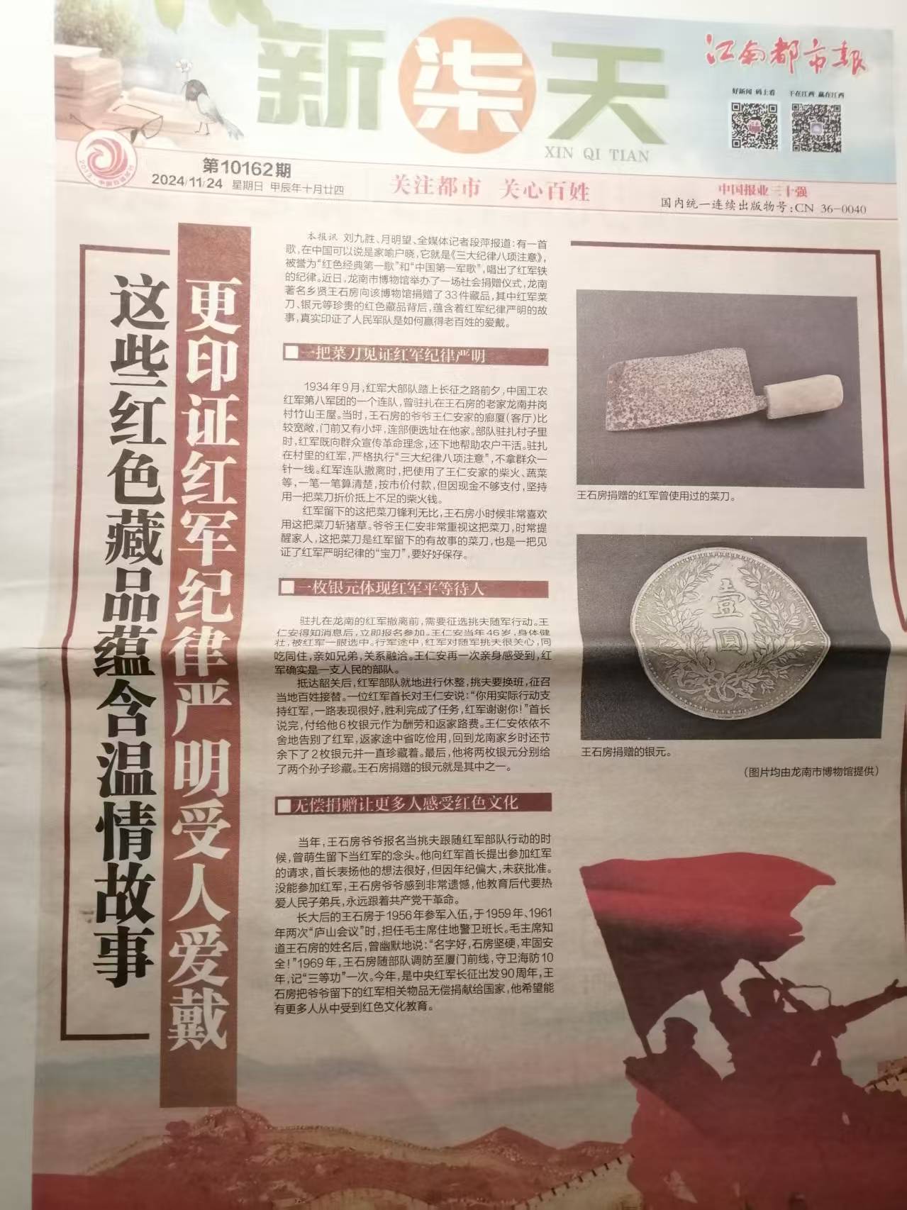 这段家族佳话,并非尘封于故纸堆。月明望自幼听着先祖故事长大,深知家族传承的珍贵。而月屋围的岁月深处,还藏着一段温暖的守望记忆。1935年3月,两百余名红军战士在龙南金盆山遭遇困境,62名被俘者被关押于月屋围中。善良的围屋村民不忍见其艰困,冒着风险暗中送去食物与草药。一名红军战士为表谢意,递出一枚硬币,这枚承载着患难真情的信物,被月家世代珍藏。如今,这段往事经地方史料收录、媒体传播,更被赣南职业技术学院改编为历史舞台剧,成为传递人间善意的生动教材。