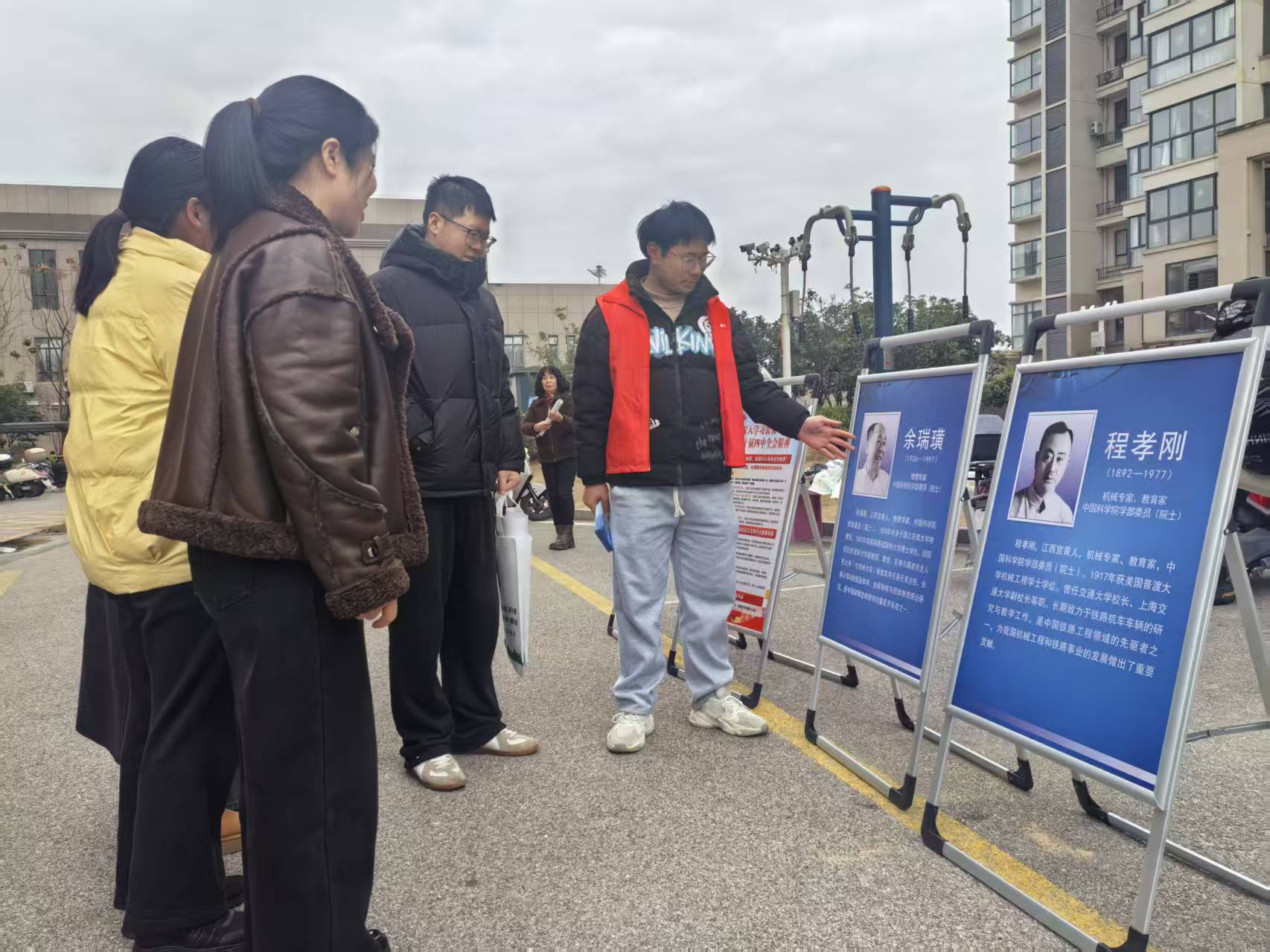 活动当天,科普大篷车刚停稳,车身上“宜黄县科普大篷车进社区”的红色横幅就吸引了不少居民围观。我最先守在科学展板前,展板上是程孝刚、余瑞璜等江西籍科学家的事迹,看着这些前辈的科研经历,我忽然觉得专业课上那些晦涩的理论,都有了更鲜活的意义。面对围过来的居民,我没再纠结专业术语,而是用家乡话把科学家们的探索故事,还有他们研究领域里和信息技术相关的简单原理,慢慢讲清楚。老人们听得认真,时不时点头,孩子们则追着问“这个爷爷是研究什么的”,那一刻我真切感受到,科普不是单向的讲解,而是双向的共鸣。