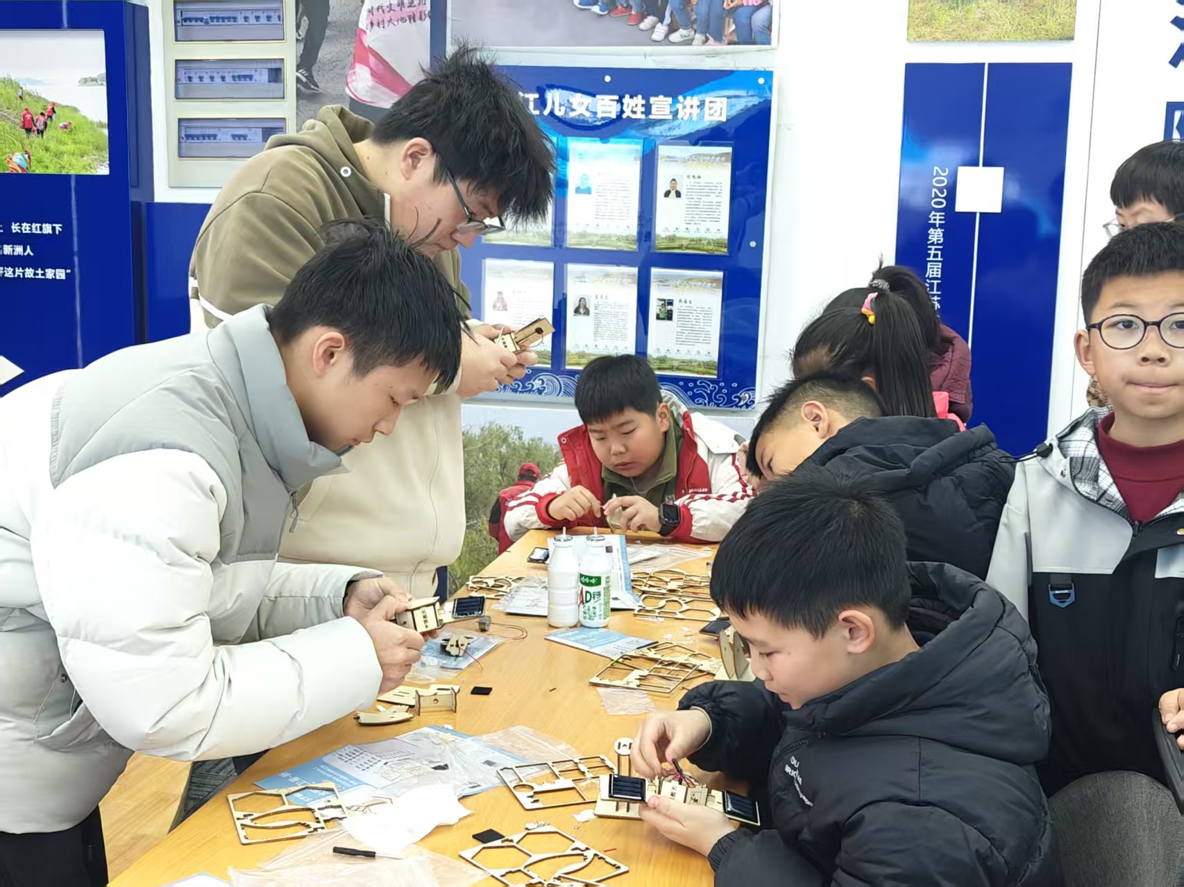 太阳能小卫星模型制作则更具科技感与协作性。孩子们分成小组,在志愿者带领下认识卫星的基本结构:太阳能板、主体舱等。拼接过程中,他们学习如何连接电路、如何让太阳能板朝向“太阳”(模拟光源)。遇到困难时,组员之间互相讨论、协作解决,小小的工作台上洋溢着探索与合作的氛围。模型完成后,孩子们举起自己组装的“小卫星”,脸上写满了成就感:“原来卫星是这样做出来的!”