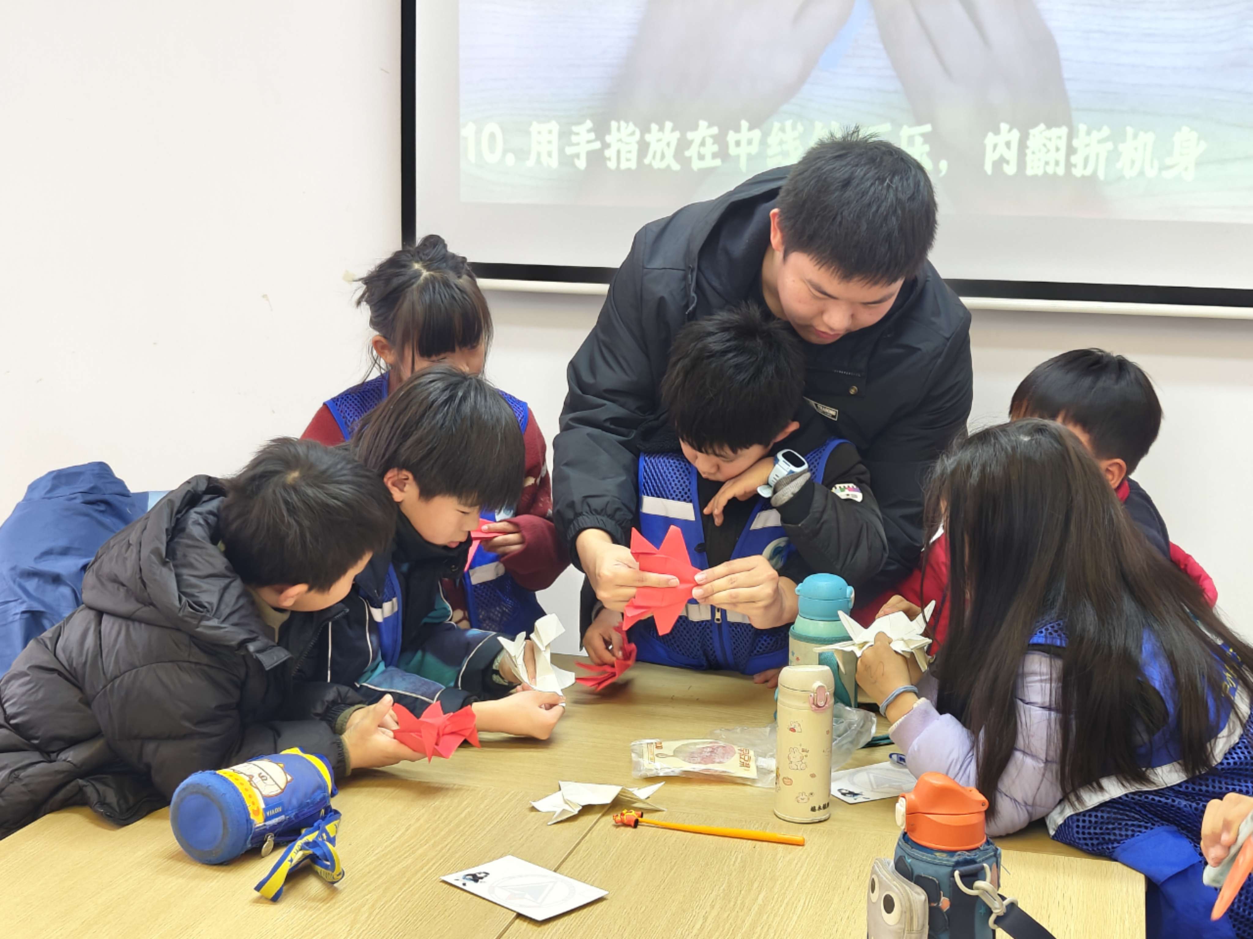 实践环节是孩子们最期待的“动手时刻”。在SU-27折纸课上,孩子们不仅学会了折叠一款仿真纸飞机,还在志愿者指导下进行了简单的“试飞比赛”,通过调整机翼角度和投掷力度,观察飞行轨迹的变化,直观感受空气动力学原理。一名小男孩兴奋地说:“我的飞机飞得最稳,因为我刚才听老师讲了翼型!”