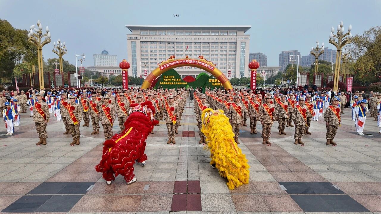 9点整,市民广场上锣鼓喧天,舞狮表演精彩上演。两只雄狮在鼓点的伴奏下翻滚跳跃,时而威武雄壮,时而憨态可掬,引来阵阵喝彩。舞狮是中华民族的传统艺术,象征着吉祥与力量,寓意新兵们如雄狮般勇猛无畏,在军营中建功立业。永丰县实验学校的鼓乐团与舞狮团队默契配合,将现场气氛推向高潮。