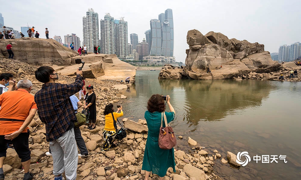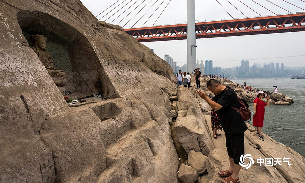 随着枯水期水位持续下降,重庆东水门大桥下的“龙门浩月”石梁整体浮出水面,形似“神龟”的巨石现身,石梁上的佛像、刻字、“金蟾”也悉数亮像,吸引不少市民前来围观“打卡”。