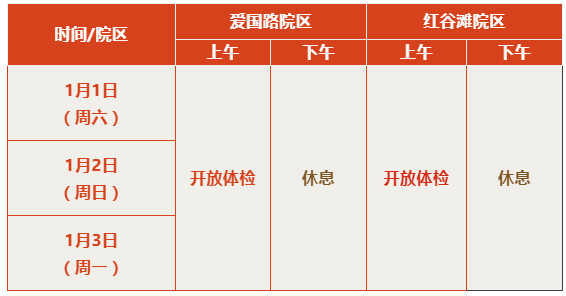 2022年元旦假期体检安排