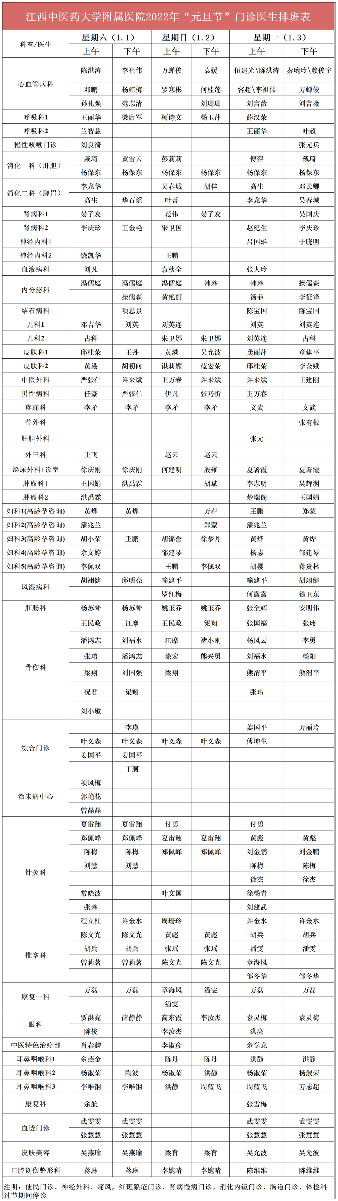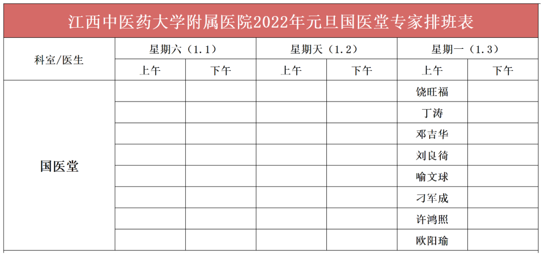 江西省各大医院2022年元旦假期门诊排班汇总来了!