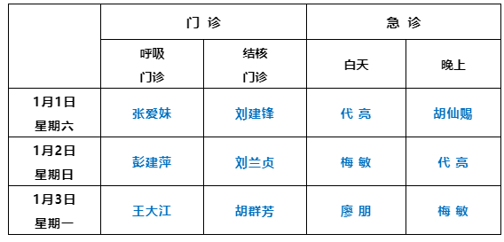 二、2022年1月2日至3日(周日、周一),全院各临床科室(含财大门诊和世贸路门诊)按双休日排班正常开诊;