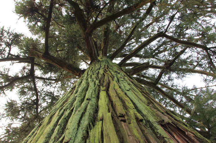 该杉树生长历史悠久,高大葱郁,主干磅礴,树冠遮天盖日,几百年来树叶茂盛,年年结果累累,却未见长高。