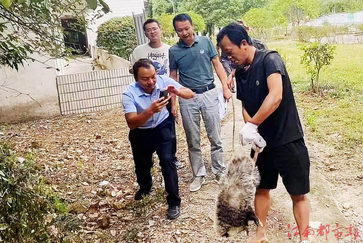 接到老师们的报告后,桃红岭梅花鹿保护区东升保护管理站的工作人员迅速赶到现场处置。经辨认,该野生动物是一只成年猪獾,体重约6公斤。工作人员随即对其进行了仔细检查,在确认其只是受到惊吓,没有受伤的情况下,众人合力将它带到学校附近山脚下放回山林。