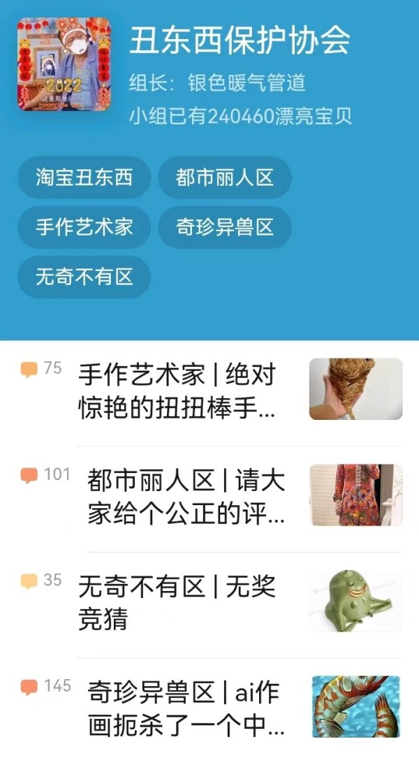“丑东西们聚集在一起,快乐欢愉,不用在乎别人的目光。” 创立于2019年12月的“丑东西保护协会”小组,目前已拥有24万年轻成员。