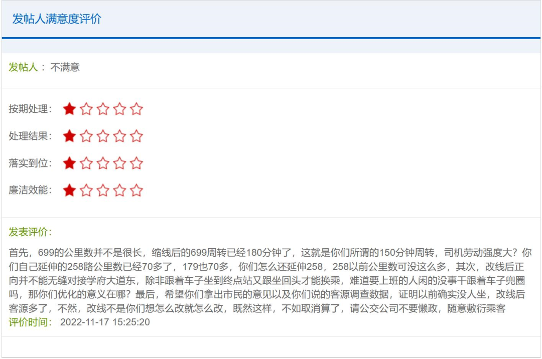 但线路“优化”后,往红谷滩方向终点改到“南昌之星”,地铁大厦站、秋水广场站等客流大站在内的8个停靠站被砍掉,“699”舍弃无缝接驳地铁功能,使湾里天宁西路这条动线上的上班族也陷入通勤困境。对此,众网友通过12345热线、问政江西等平台反映此事。
