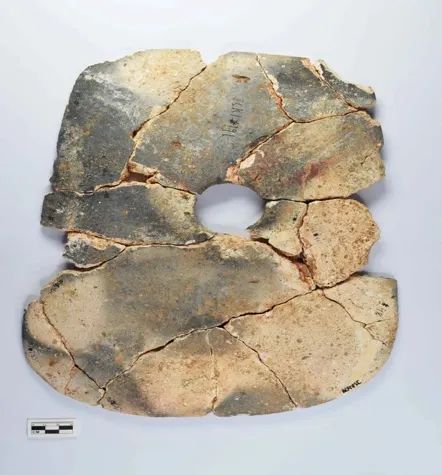 本次重点发掘的祭祀坑平面形状呈圆角长方形,南北长4.1米、东西宽3.5米、深度32厘米,共出土器物260余件,其中石器140余件、玉器70余件、陶器40余件。其中,石器以钺占绝对多数,另有少量锛。这些石钺多为宽扁形,大孔、三边刃,并有少量双孔石钺。其中一件长38.3厘米,上宽24.3、下宽28.5厘米,为凌家滩遗址目前发现体量最大石钺,也是目前发现的中国新石器时代最大的石钺。