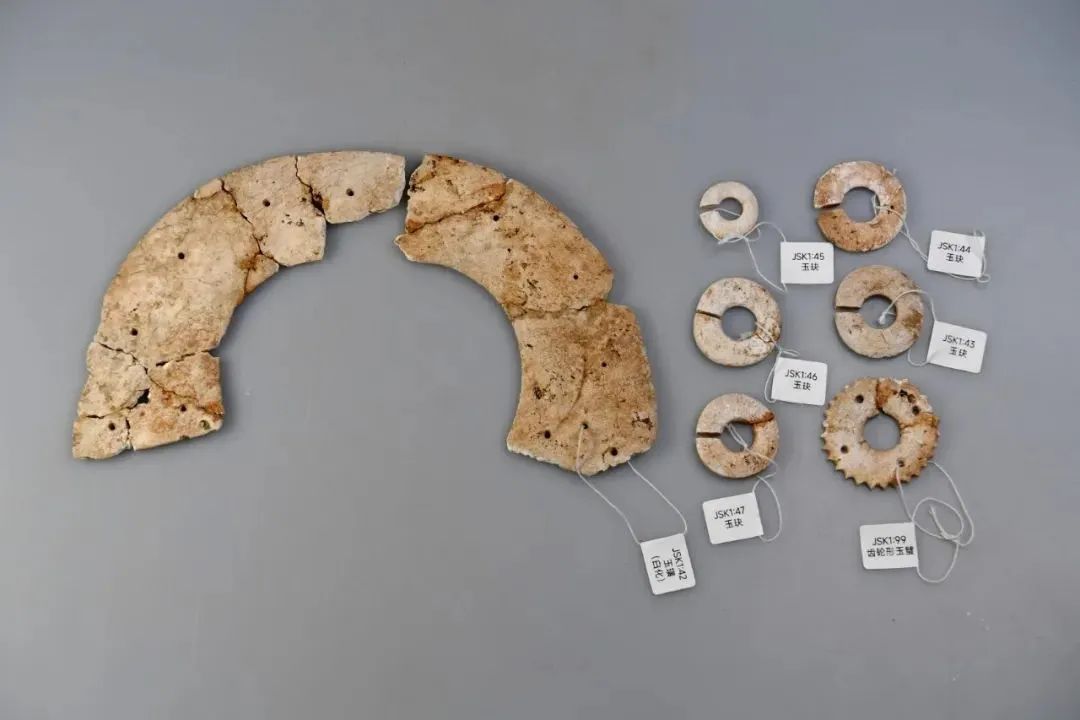考古发现的玉器以玦占绝对多数,并有少量新器形,如齿轮形器、椭圆形牌饰、梳形器等。其中,一件宽体玉璜,外径23.6厘米,为凌家滩目前发现的最大的玉璜,也是目前发现中国新石器时代最大的玉璜。值得特别指出,新发现的一件龙首形玉器造型奇特,工艺精湛,其一端阴刻成猪龙首形,略上翘,另一端为尖锥形,为当前中国史前考古发现中仅见!