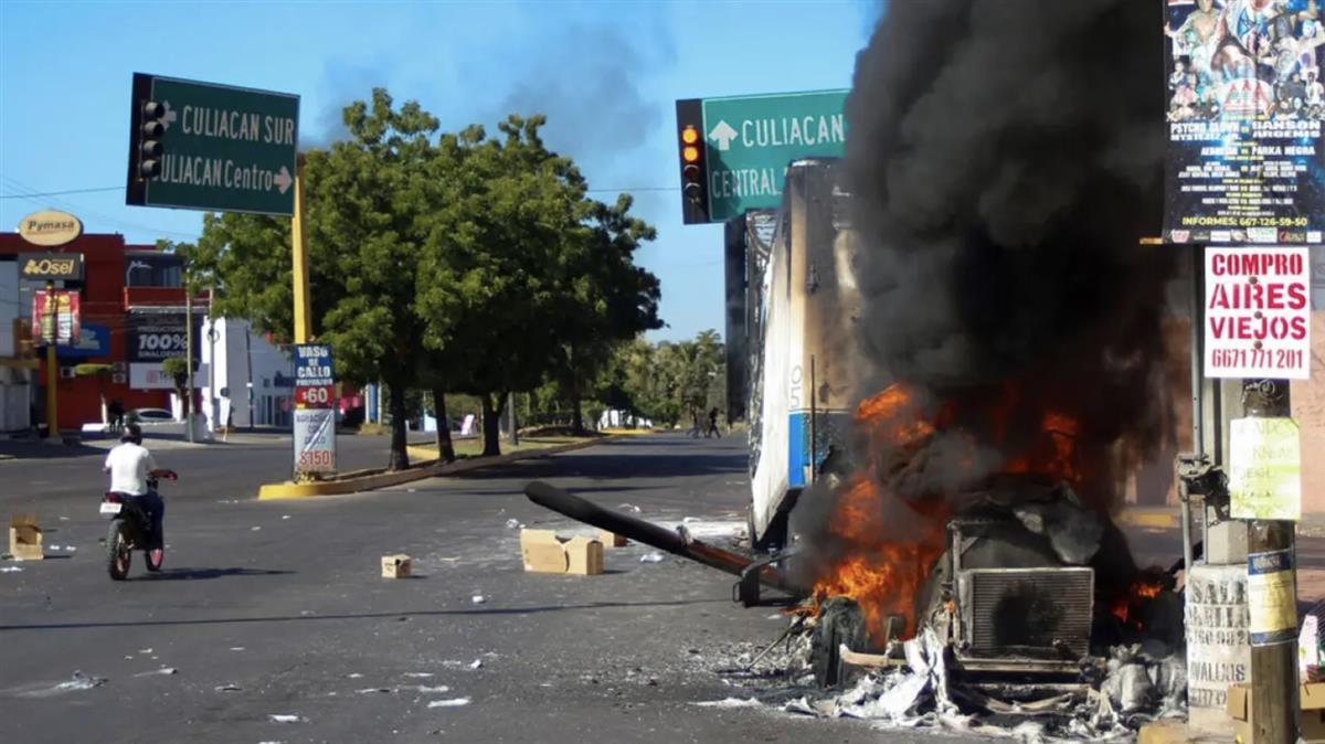 奥维迪奥在库利亚坎被捕后引发了武装卡特尔成员的暴力浪潮。武装毒贩设置路障,放火烧毁了数十辆汽车以阻塞交通。