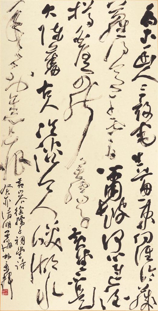 ▲大草 《黄庭坚·徐孺子祠堂》释文:乔木幽人三亩宅,生刍一束向谁论?藤萝得意干云日,箫鼓何心进酒樽。白屋可能无孺子,黄堂不是欠陈蕃。古人冷淡今人笑,湖水年年到旧痕。林景辉书