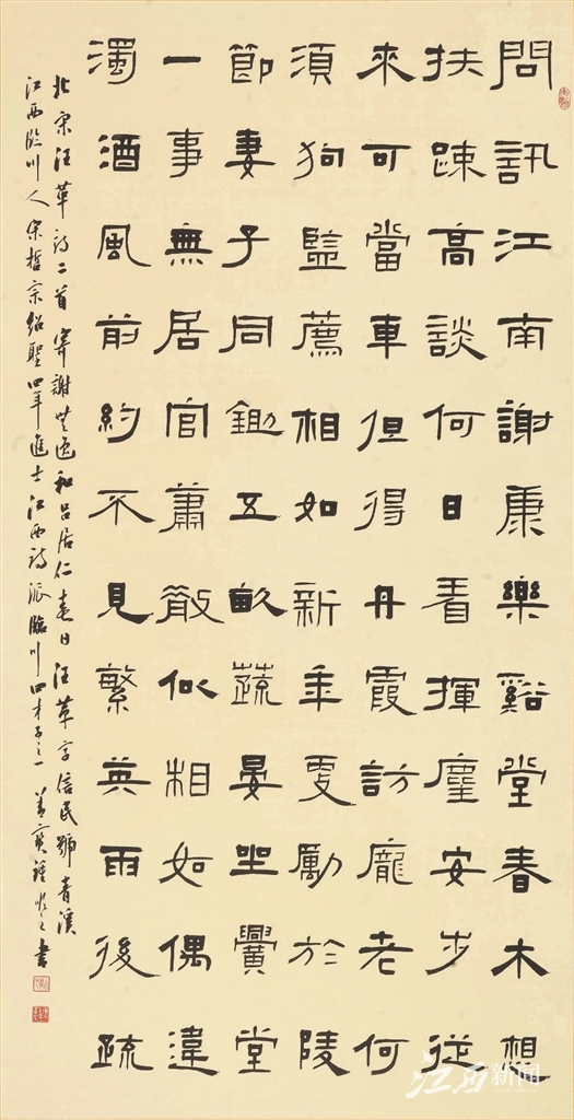 “桃李春风一杯酒,江湖夜雨十年灯”(黄庭坚《寄黄几复》)“客子光阴诗卷里,杏花消息雨声中”(陈与义《怀天经智老因访之》)。赏桃李、沐春风,听闻杏花消息。让我们记住春天里的这场跨时空“雅集”;让我们记住新时代书法人与古代江西诗派诗人的这次美丽“相约”。
