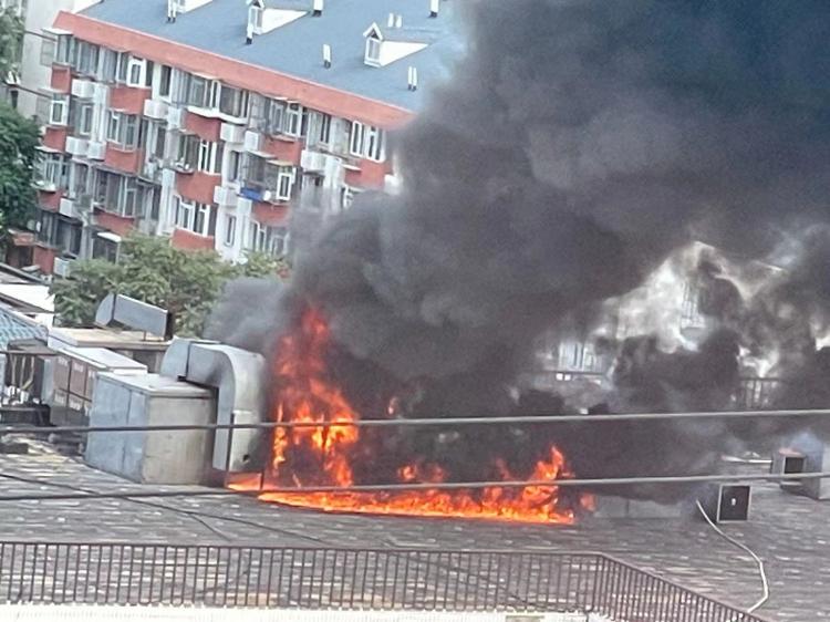 6月13日,有网友向海报新闻记者爆料称,当天下午4点左右,北京市海淀区王庄路一楼房房顶突发火灾。