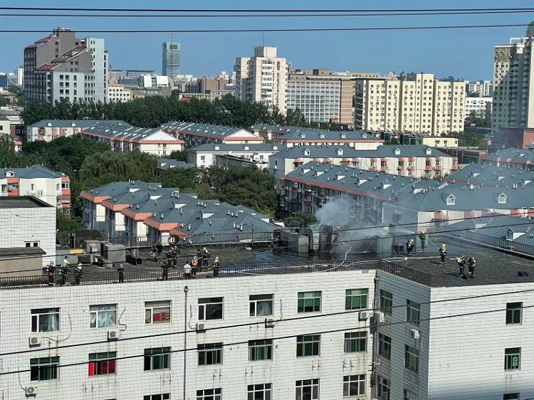 北京海淀一楼房房顶着火 消防:无人员伤亡
