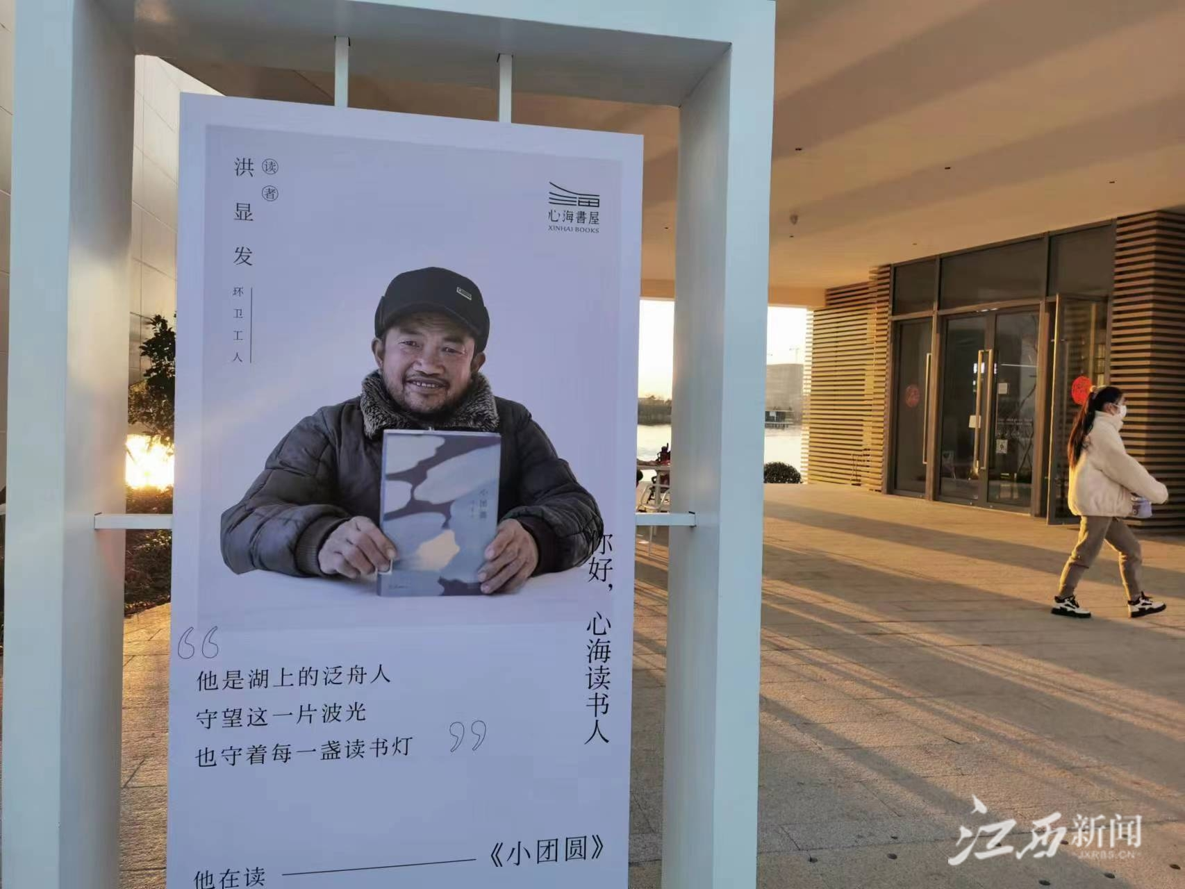 ▲赣江新区心海书房前读书海报。摄影|江西日报全媒体记者钟秋兰