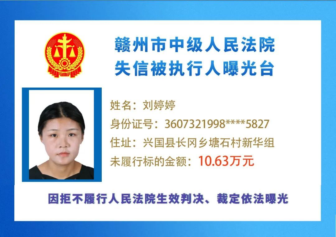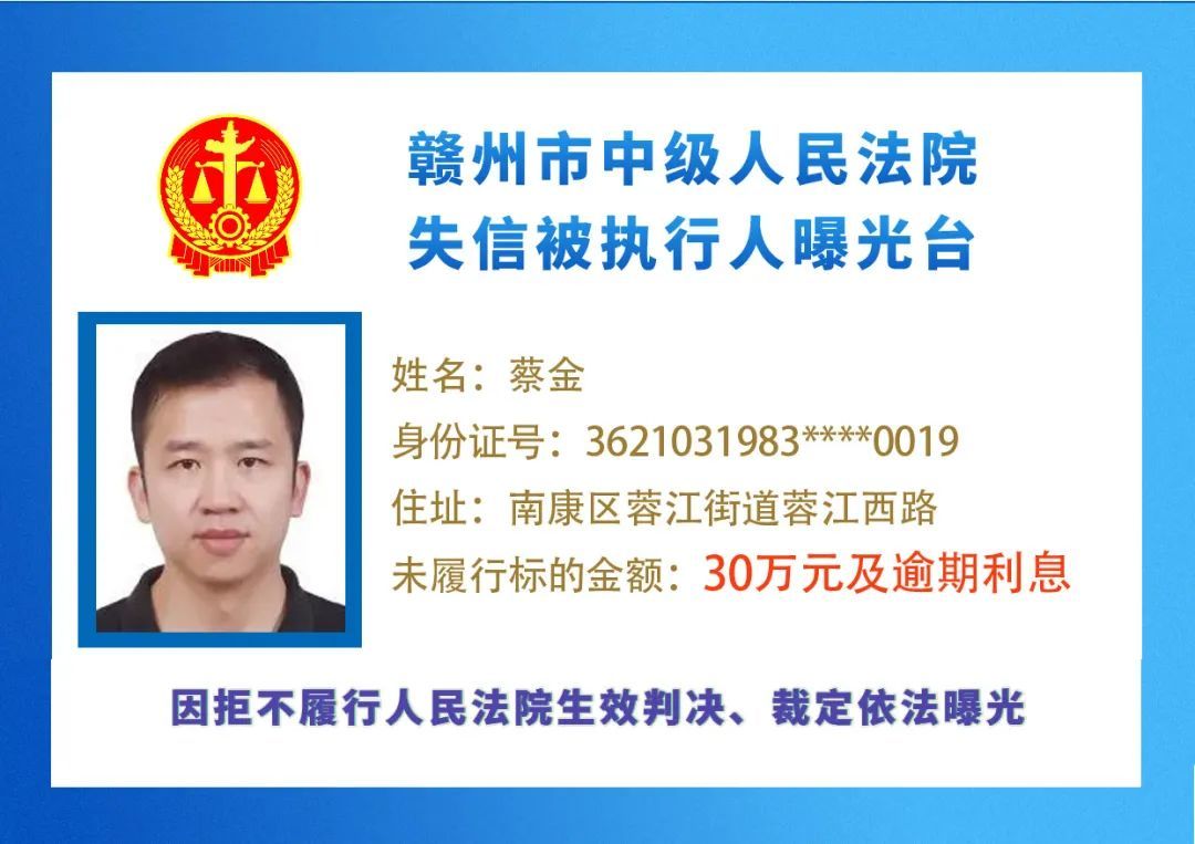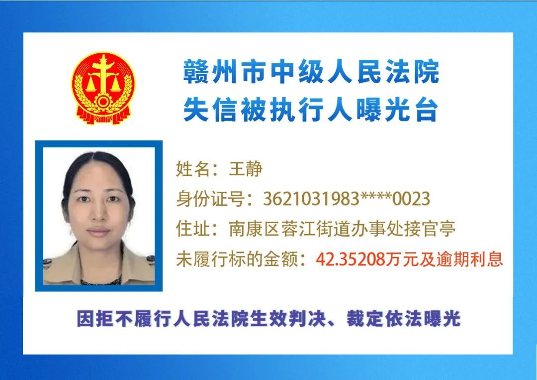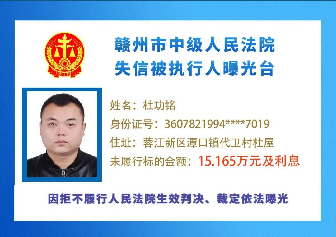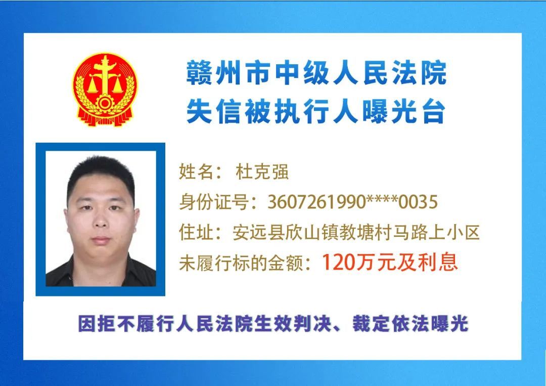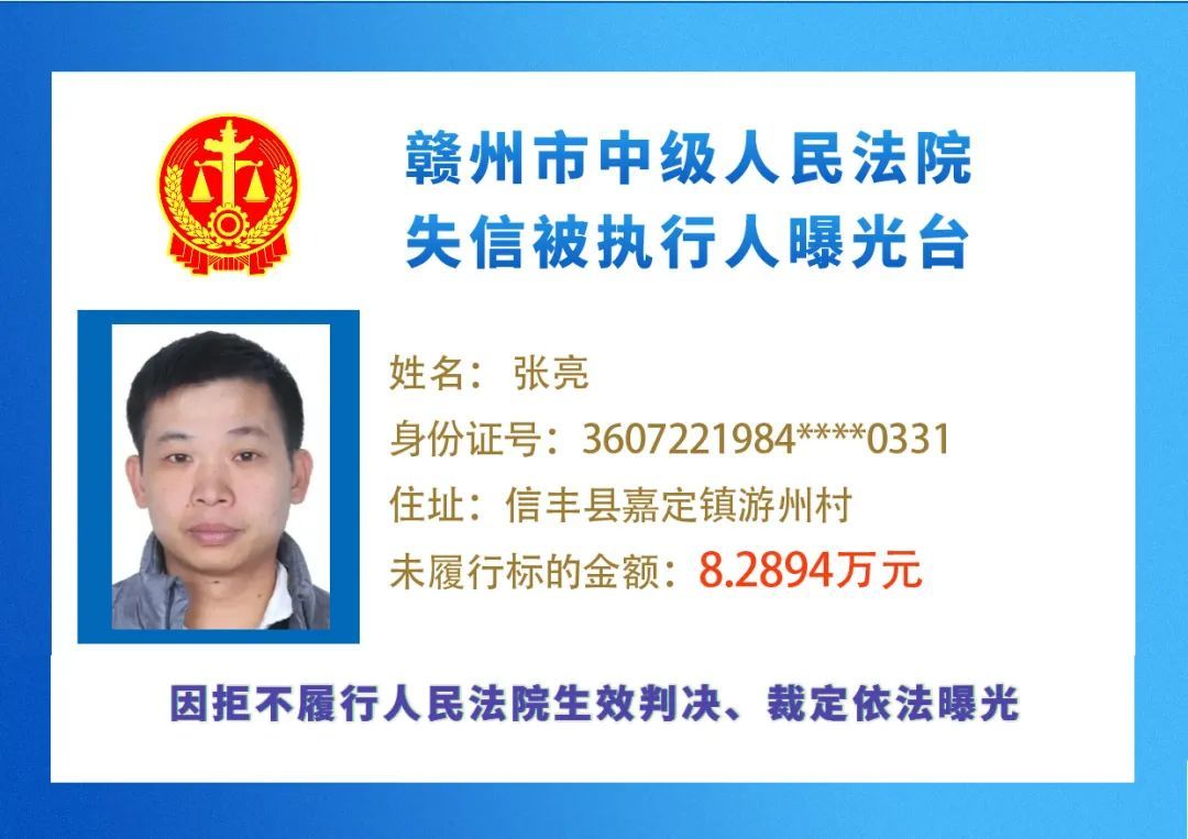 最新失信被执行人名单来了,大家快来看看,有没有你认识的人?赣州市中级人民法院失信被执行人曝光台