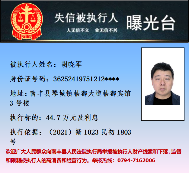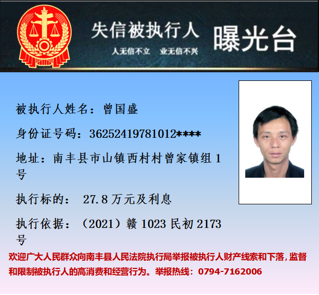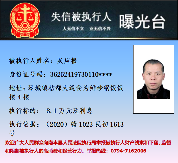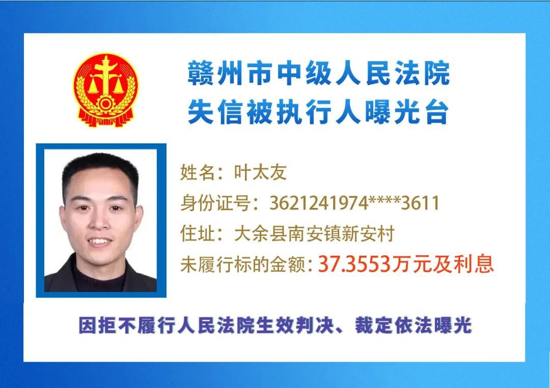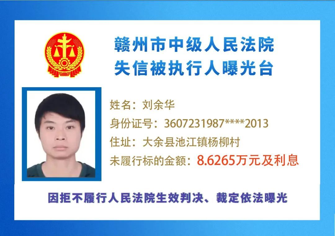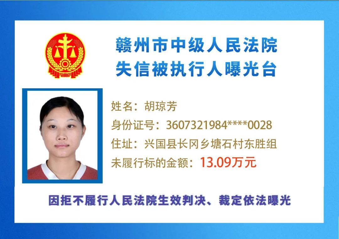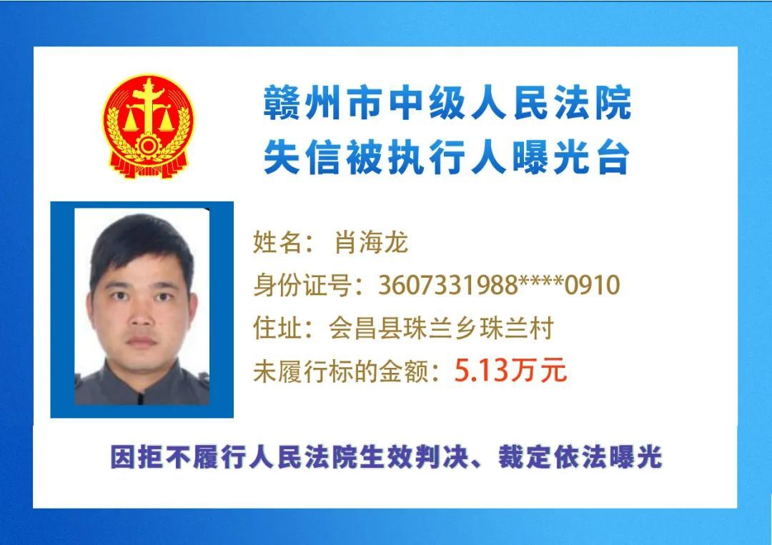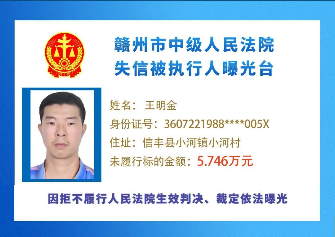 最新失信被执行人名单来了,大家快来看看,有没有你认识的人?赣州市中级人民法院失信被执行人曝光台