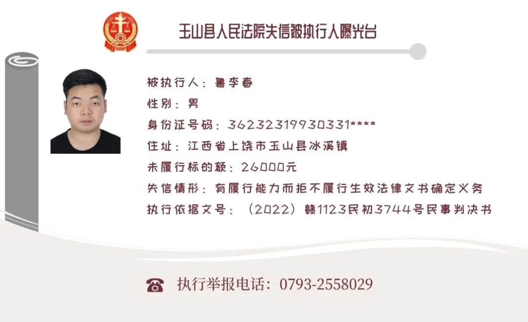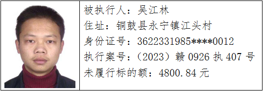 执行案号:(2023)赣0781执926号