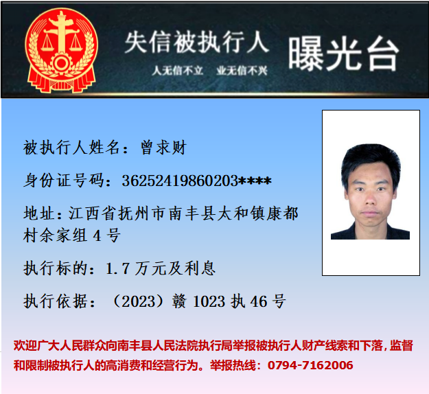 执行案号:(2023)赣0781执1691号