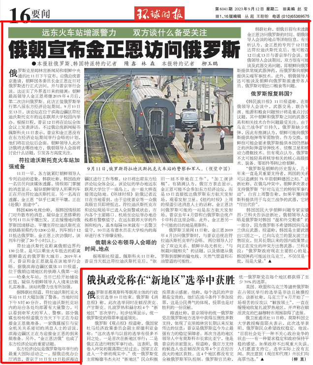 报道补充称,金正恩所乘专列在朝鲜劳动党、政府和武力机关领导干部以及一些朝鲜民众的热烈欢送下启程。报道还称,朝鲜政府、劳动党和武力机关主要干部陪同金正恩出访。