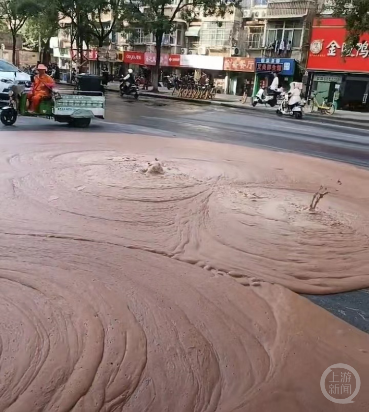 南京一路面持续喷涌红褐色不明物质,交警回应