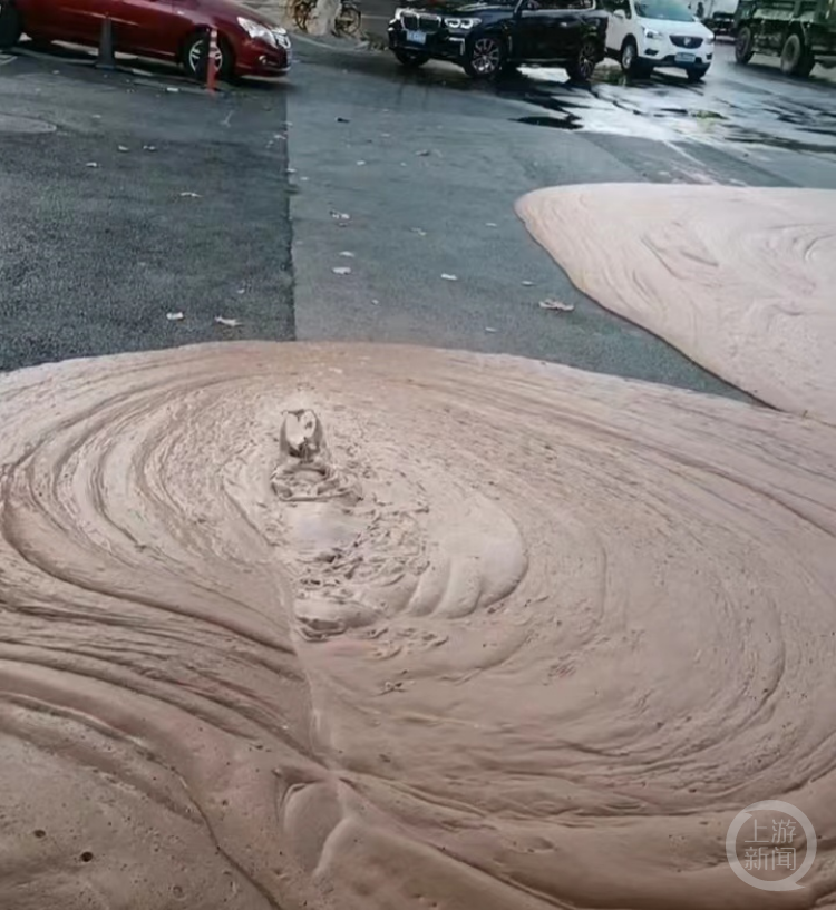 当地交警部门回复称,经现场查看,喷出的物质为施工方作业造成的泡沫,“地下施工作业,往外冒出泡沫,不是泥浆,已经清理过了。”