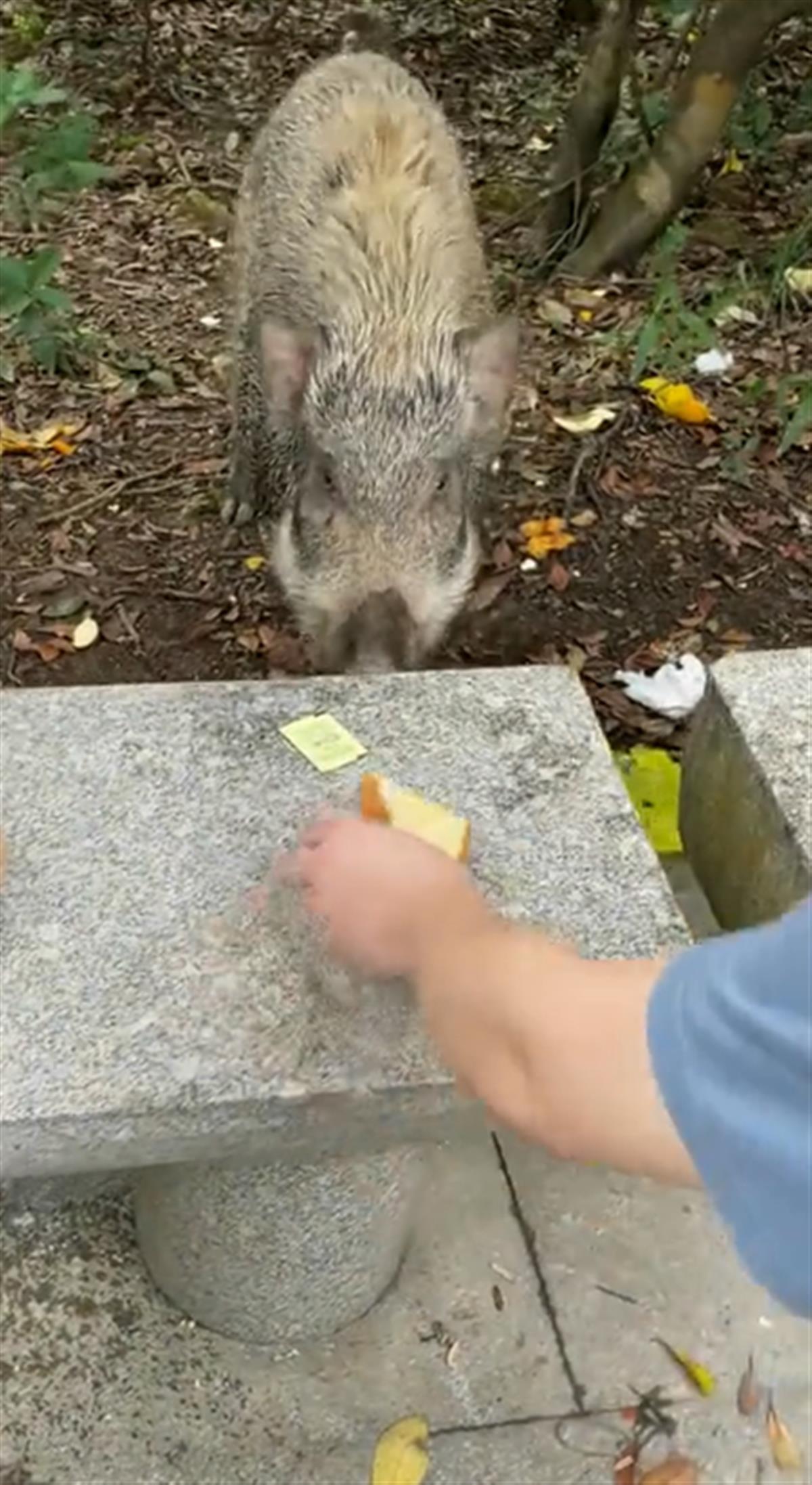 有人投喂野猪