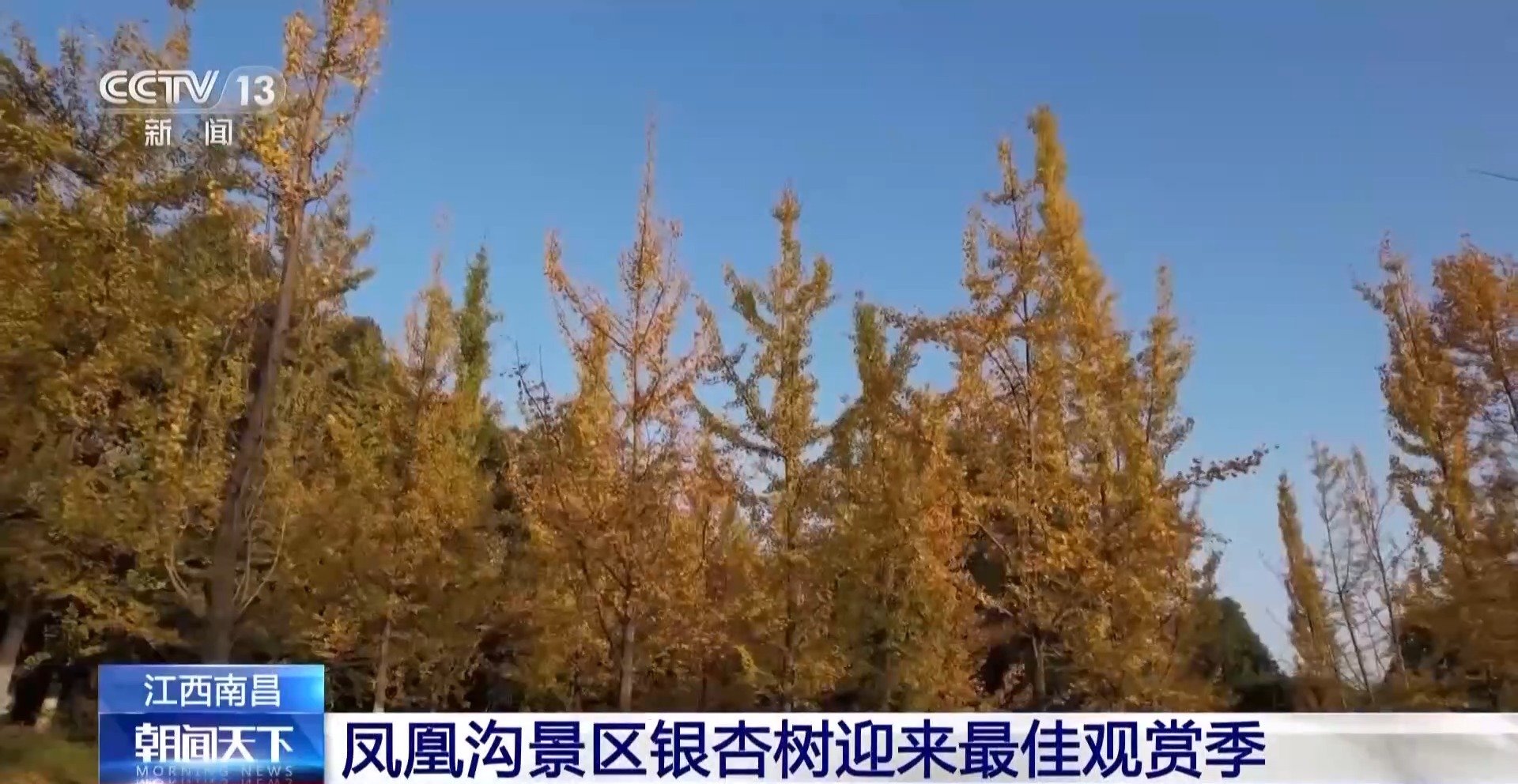 眼下,江西南昌凤凰沟景区两千多棵银杏树迎来最佳观赏季。在暖阳映照下,银杏叶随风摇曳、绚烂多姿,将整个景区点缀成一片金黄色的海洋。冬日金色的生态美景也吸引了许多市民游客前往“打卡”,记录下眼前的美景。