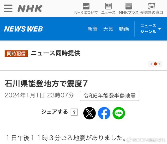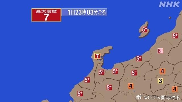 日本再次发生最高震度地震最新消息:据日本广播协会(NHK)报道,当地时间今天(1月1日)晚11点03分(北京时间晚10点03分)左右,日本石川县能登地区再次发生震度7(日本气象厅设定的10级震度中的最高级)的地震。(总台报道员 柏春洋)