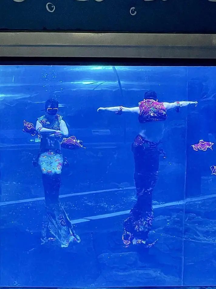 近日,长春中泰海洋世界的美人鱼表演走红网络,两条由男子扮演的美人鱼,身穿东北特色大花袄服装,身姿妖娆但体型壮硕。