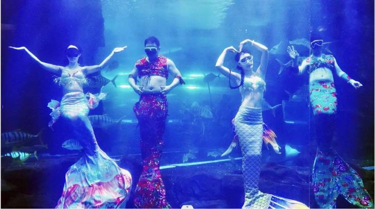 我们只有一些简单的动作,还没有经过系统的舞蹈训练,之后可能会进行专业培训,跟美人鱼小姐姐们搭配出新的节目,然后穿插演出。