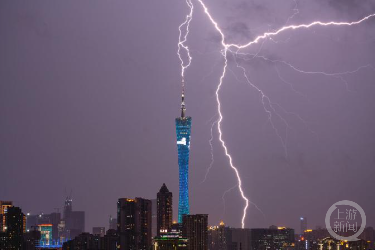 今年3月29日傍晚至夜间,广州遭遇强对流天气。有市民目睹广州地标广州塔,在雷雨期间被闪电击中塔尖。此前,2020年6月11日前后几天,广州被雷雨天气笼罩,有网友也发布广州塔“被闪电击中”的画面。