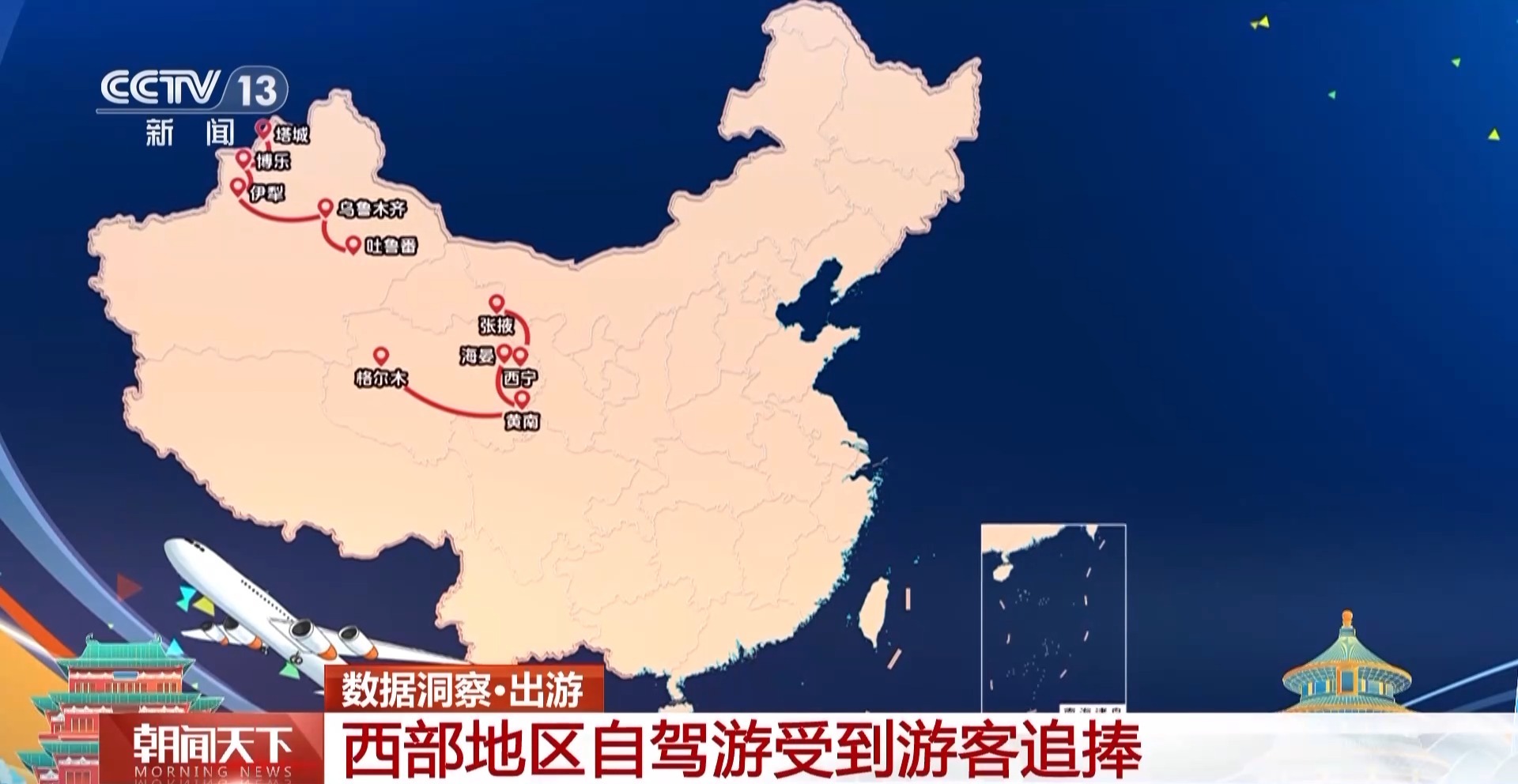 数据分析进一步发现,地图导航类APP使用流量增长最多的城市集中在西部地区。将这些城市标注在地图上,我们可以画出很多经典的自驾游线路,比如从新疆乌鲁木齐出发,途经伊犁、博乐到塔城,从青海海晏出发,经黄南到格尔木等线路。越来越多的人选择通过自驾的方式,感受沿途独特的西部美景。