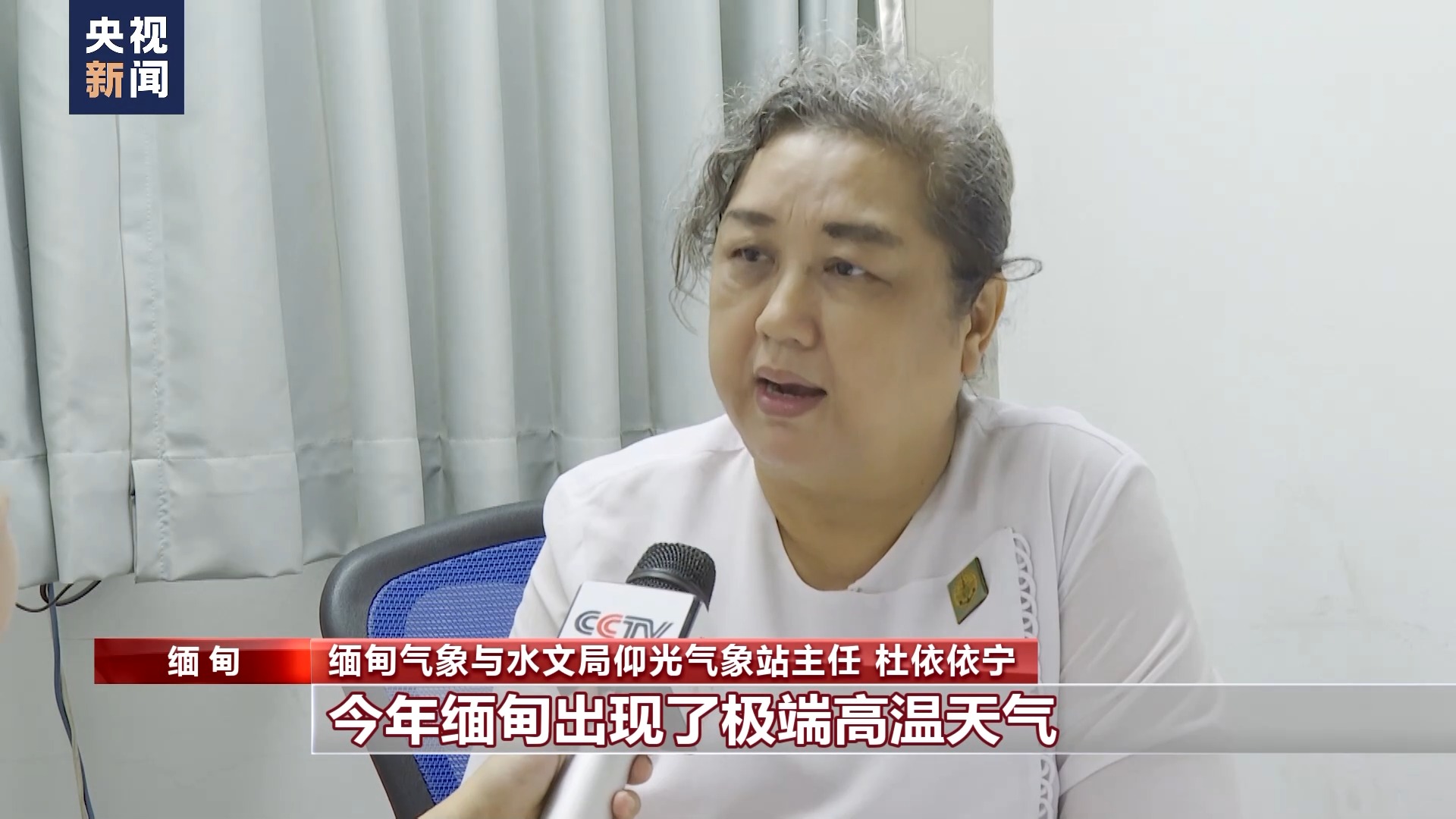 缅甸气象与水文局仰光气象站主任 杜依依宁:受厄尔尼诺现象的影响,今年缅甸出现了极端高温天气,现在缅甸正是旱季季末与雨季交替的时期,西南季风还没有进入缅甸,直到5月20日左右,缅甸全境依然会维持极端高温天气。