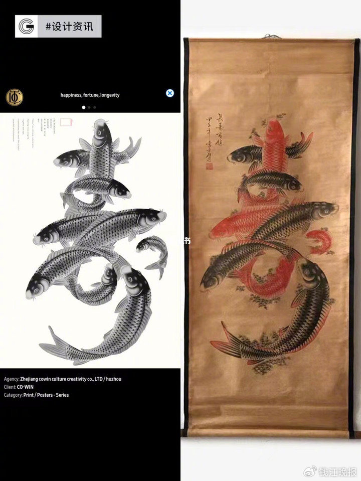 随着名单的公布,系列作品《福、禄、寿》引起了网友关注。“作品‘寿’字,无论是鱼的数量还是造型动态均与传统书画作品《鱼寿图》极为相似。”有网友觉得该件作品或涉及抄袭。