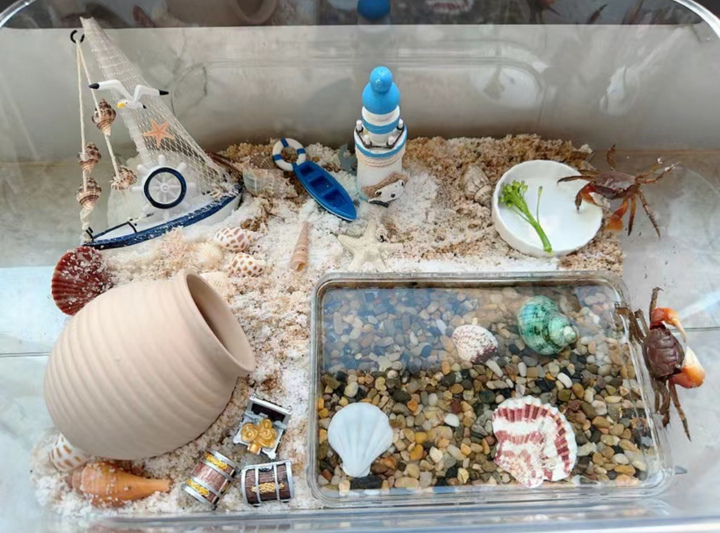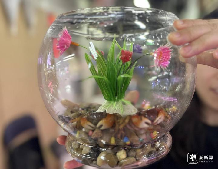 最重要的是,打造螃蟹的“可爱小家园”,也十分有趣。社交媒体上,有人弄了干湿分离,有人搬来了各种卡通造型的装饰品……