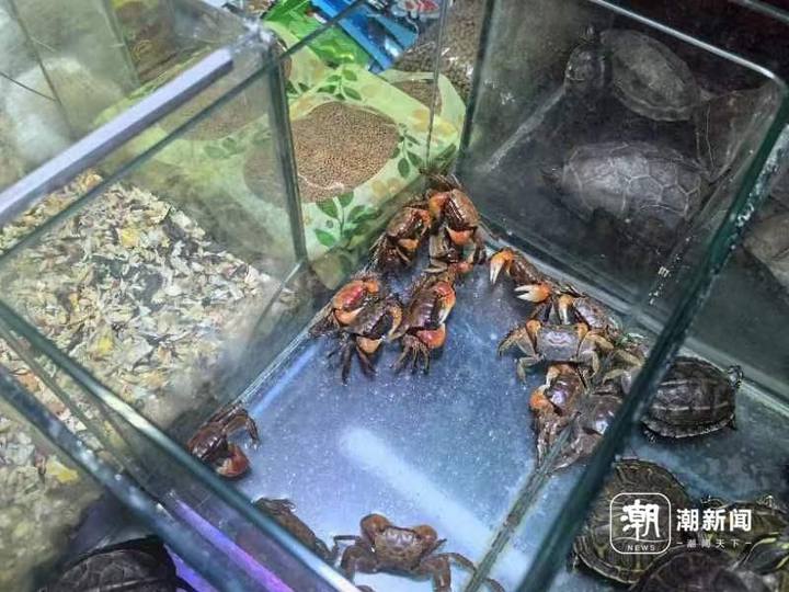 记者走访了几家门店,不少店内都有了这种“网红”的身影:它们统一“住”在玻璃盒子里,和彩色乌龟当邻居。