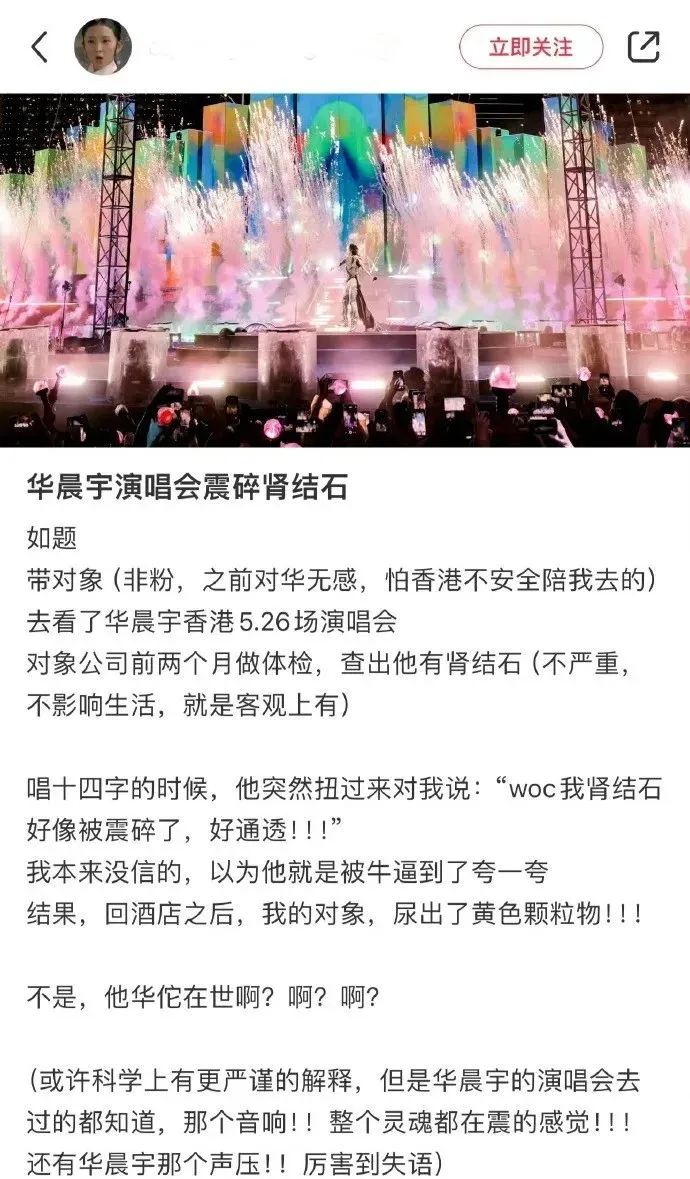 那这种通过演唱会上高频声波震碎结石,而非正常的医疗手段碎石,会不会对本人造成什么风险?蒋理海认为,演唱会这种声波的能量相对于治疗的冲击波来说其实是非常低的,一般不会产生什么风险。而大结石基本上不可能在演唱会上被震碎。当然每个人的结石成分不一样,甚至有的病人是多种成分的混合性结石。对于一些比较大但很脆的结石有可能会震碎,但碎片有可能也比较大,不一定能够排出来,反倒会引起疼痛。
